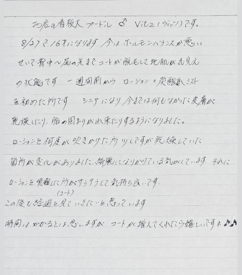 時間はかかるとは思いますが、コート(被毛)が増えてくれたら嬉しいですネ♪♪